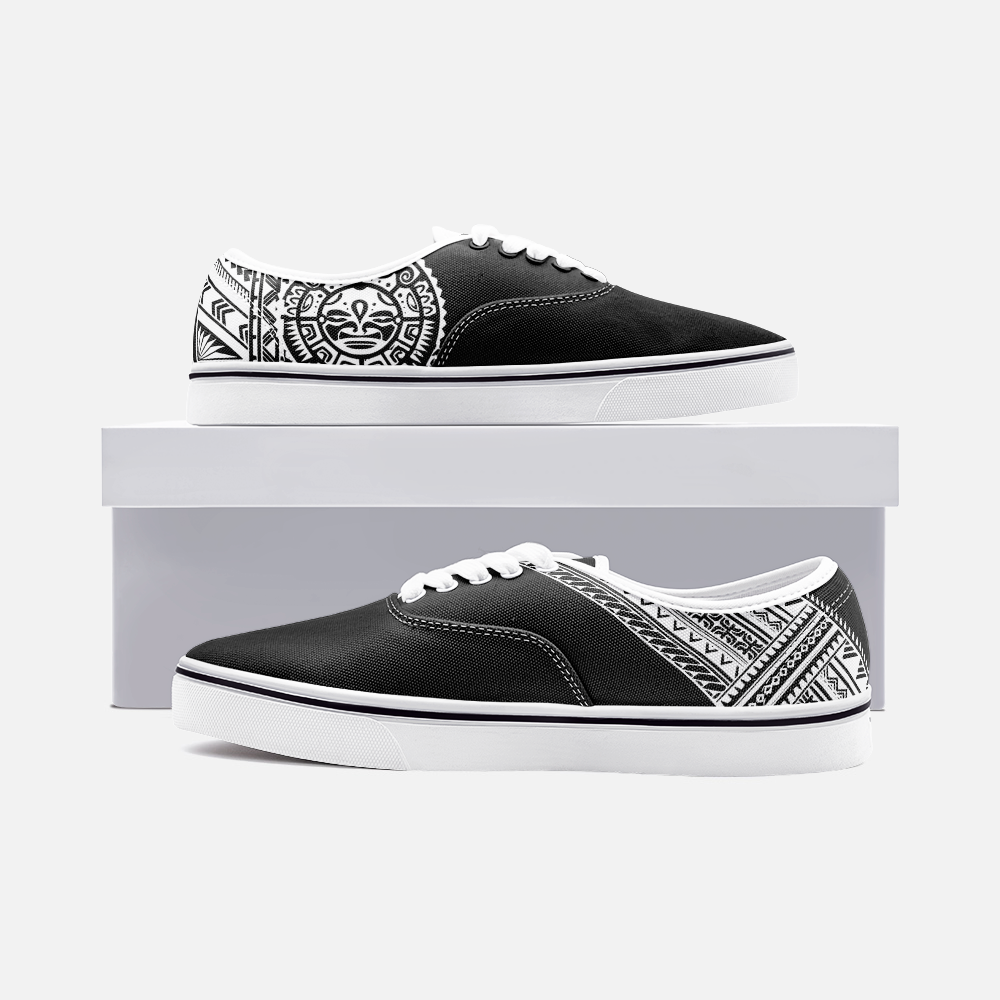 Hāka is inspired by the haka — a traditional challenge dance known for strength, rhythm, and unity. It’s not just a performance; it’s a message: we are here, we are connected, and we will not be moved. This loafer-style sneaker keeps the look clean and easy to wear, while the bold black-and-white patterns carries that same intensity in a quieter form. Created as an inspired tribute to haka tradition and the spirit of unity, strength, and respect. Warrior Culture isn’t about being loud — it’s about being unshakable.
