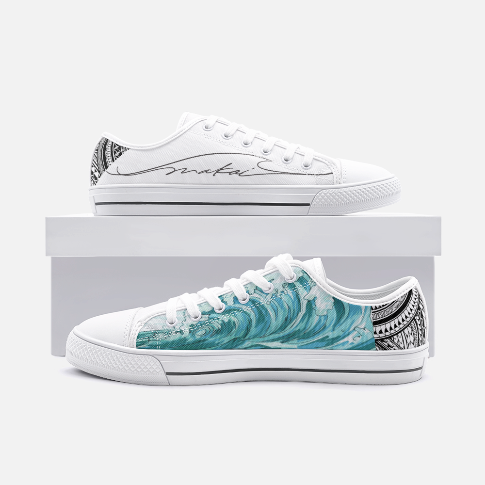 Makai means toward the ocean, the place we return to breathe, reset, and remember who we are. With wave artwork and Polynesian-inspired detailing, this pair is a nod to the sea that connects our islands and carries our stories. Clean, calm, and powerful in all the right ways.