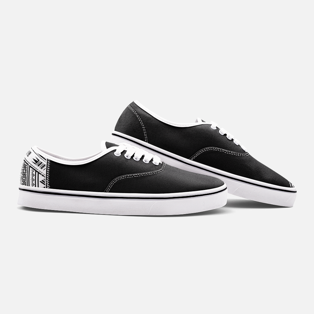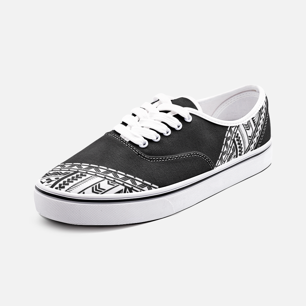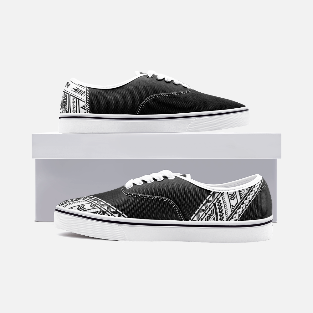 The pe’a is more than a tattoo — it’s a symbol of strength, identity, and the responsibility of carrying your name with honor. This loafer-style sneaker takes that spirit and makes it everyday. The traditional-inspired pattern wraps the shoe at the toe and heel, like a quiet reminder that heritage isn’t something you put on for show — it’s something you live. Clean, bold, and easy to wear, this pair is built for movement with meaning. Warrior Culture isn’t just what you wear — it’s what you carry.