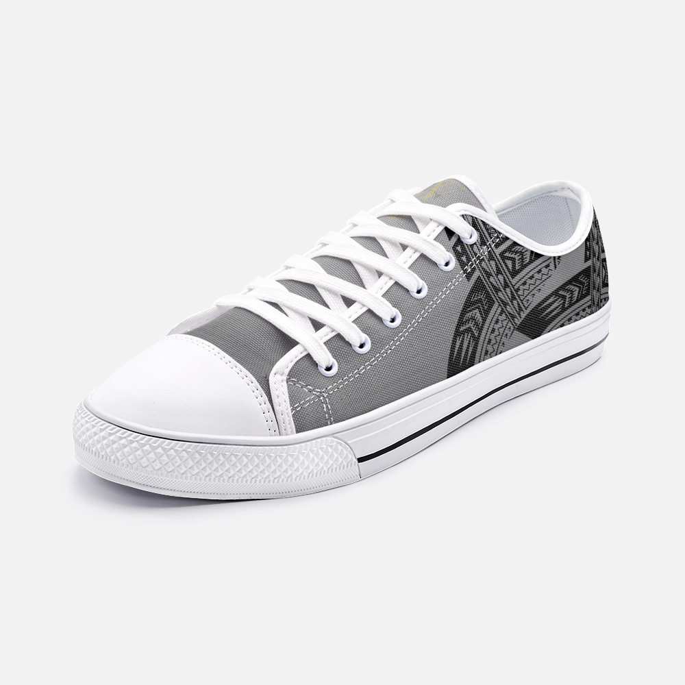 This sneaker is our everyday nod to that legacy. Clean gray canvas, bold black patterning inspired by traditional tatau lines, and a classic low-top look that goes with everything. It’s subtle from a distance… and unmistakable up close (the best kind of statement).