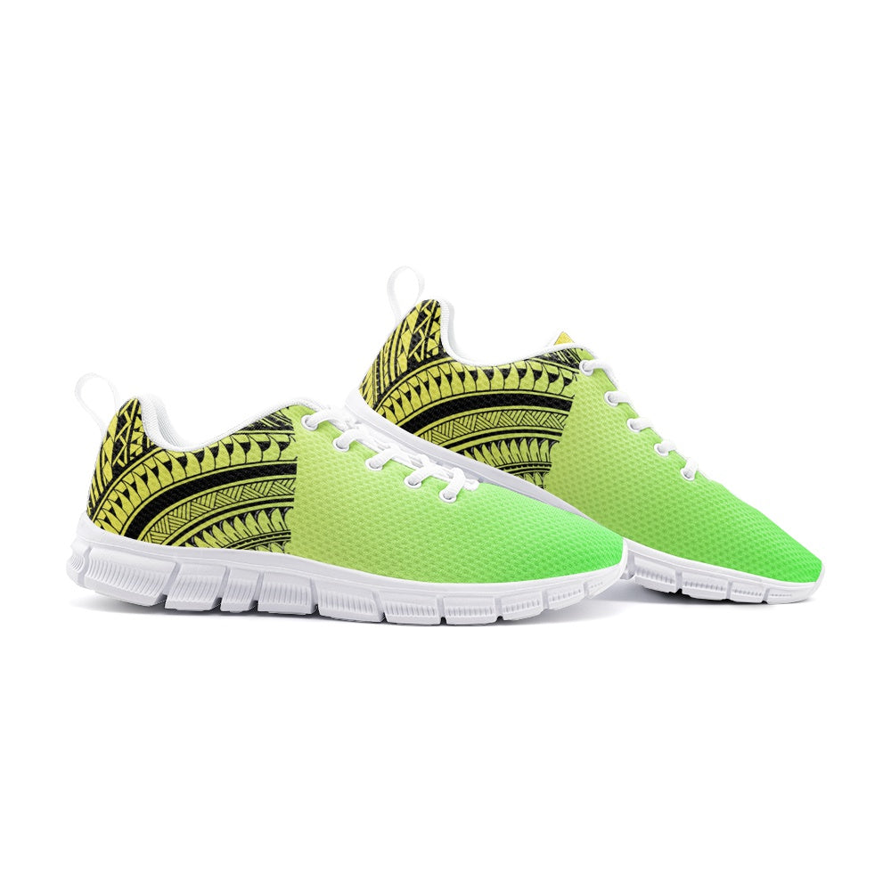 Sāmoa Green is built for movement with meaning. The clean athletic silhouette keeps it lightweight and everyday ready, while the green tatau-inspired heel wrap adds a grounded cultural signature. Green is a nod to growth and life a reminder that wherever you’re headed, you’re still carrying where you come from. Simple from the front, rooted from the back.